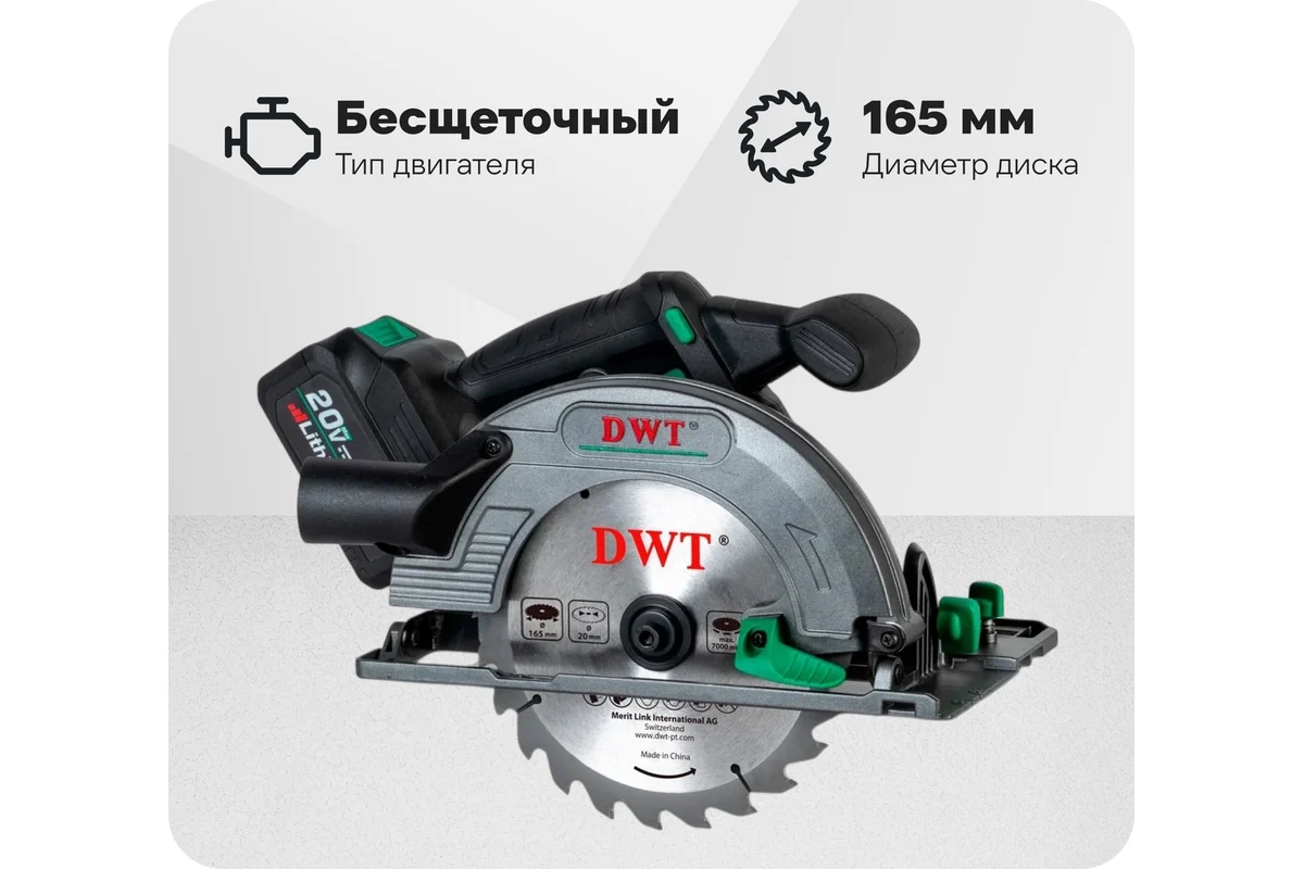 - Бесщеточная аккумуляторная дисковая пила DWT AHKP-20-165 DN-4 BMC предназначена для выполнения продольных и поперечных резов в древесине - прямых и под углом.