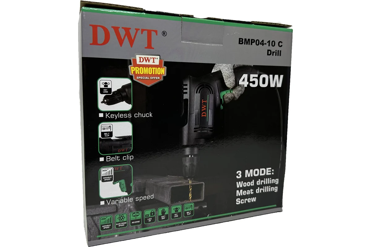 - Безударная дрель DWT BMP04-10 C предназначена для сверления отверстий в древесине, металле, керамике, пластике и закручивания крепежа.
