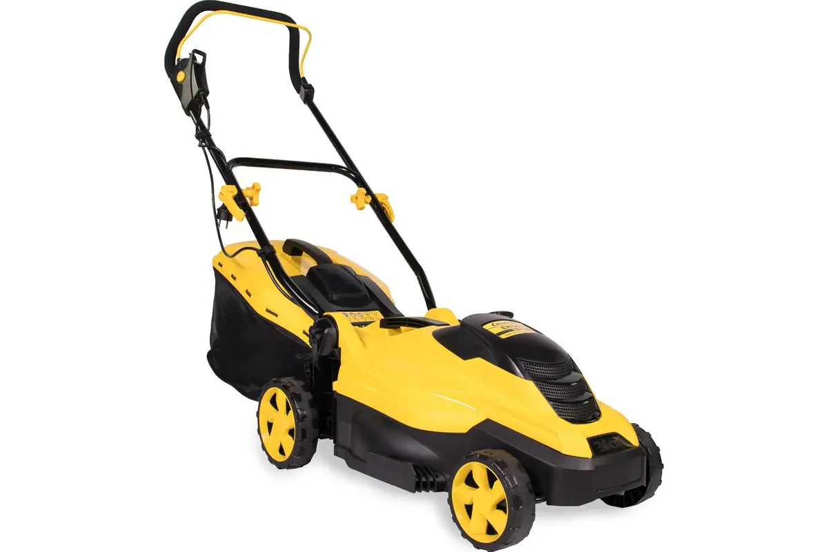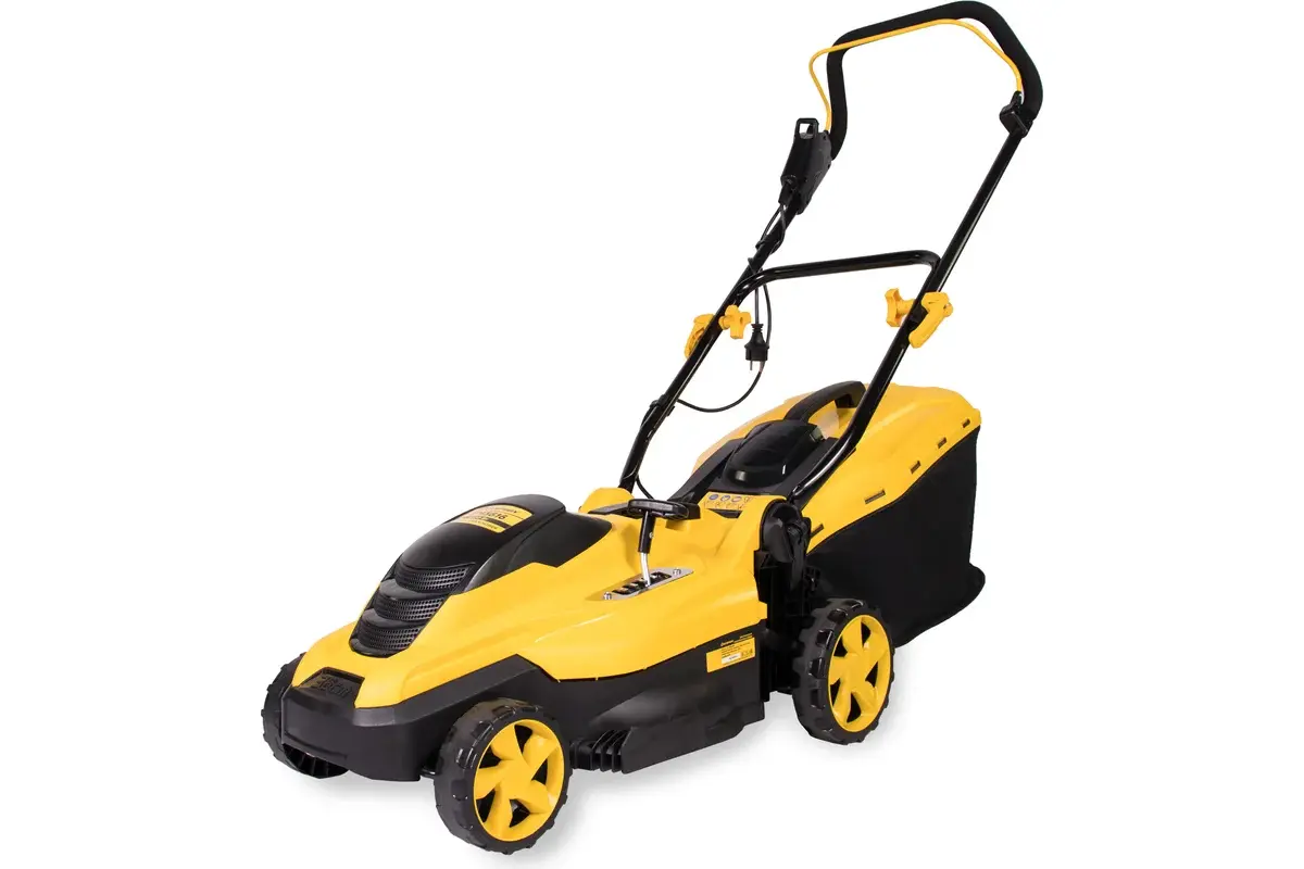 Электрическая газонокосилка Champion EM3616 используется для ухода за участками небольшой площади.