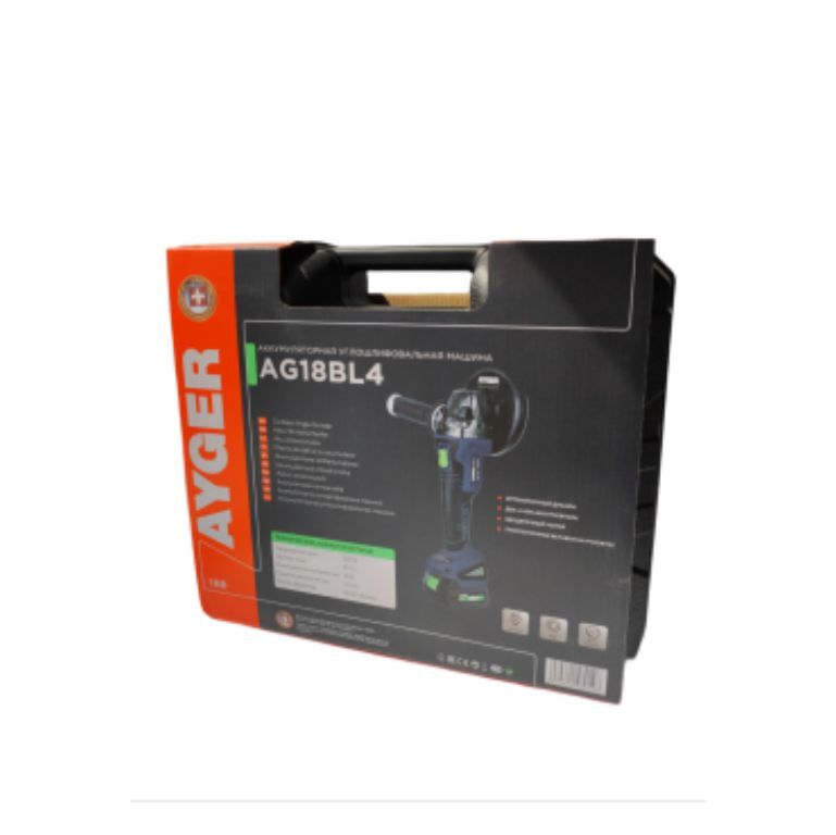 Угловая шлифовальная машина аккумуляторная бесщеточная AYGER AG18BL4 предназначена для резки, шлифовки различных поверхностей. Дополнительная рукоятка упрощает управление инструментом и снижает уровень вибрации. Установить ее можно в 3 положениях. Специальный поворотный кожух защищает оператора при работе. Угловая шлифмашина AG18BL4 оснащена бесщеточным двигателем, который обеспечивает высокую производительность и долгий срок службы. Работа от аккумулятора обеспечивает свободу перемещения и делает AG18BL4 идеальным решением для выездных работ. Шлифмашина имеет 2 скорости работы, индикатор уровня заряда, защиту от пыли, прорезиненные вставки на рукоятке.