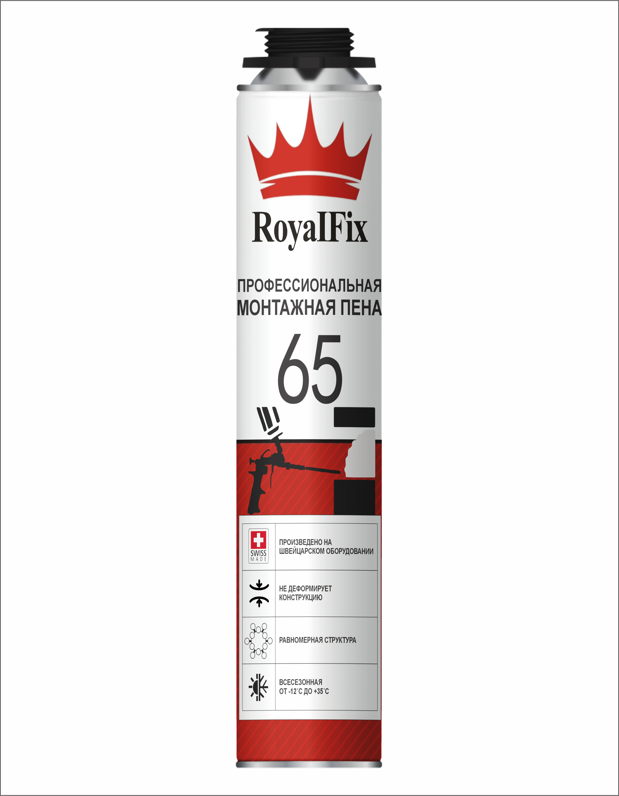 Профессиональная монтажная пена звуко-теплоизоляция, бренда ROYALFIX премиум качества для средне- и мелко-объёмных монтажей. Продукция предназначена для монтажа оконных витражей и дверных блоков, подоконников, крепления стеновых панелей, герметизации щелей, пустот, тепло - и шумоизоляции, а также для других строительных, отделочных и монтажных работ. Обеспечивает равномерный, стабильный выход, мелко- и среднепористую структуру готовой пены. Пена Монтажная под пистолет обладает необходимым вторичным расширением, после затвердевания образует прочный полимерный материал, благодаря чему подходит для обработки крупных щелей и пустот, оконных проёмов.