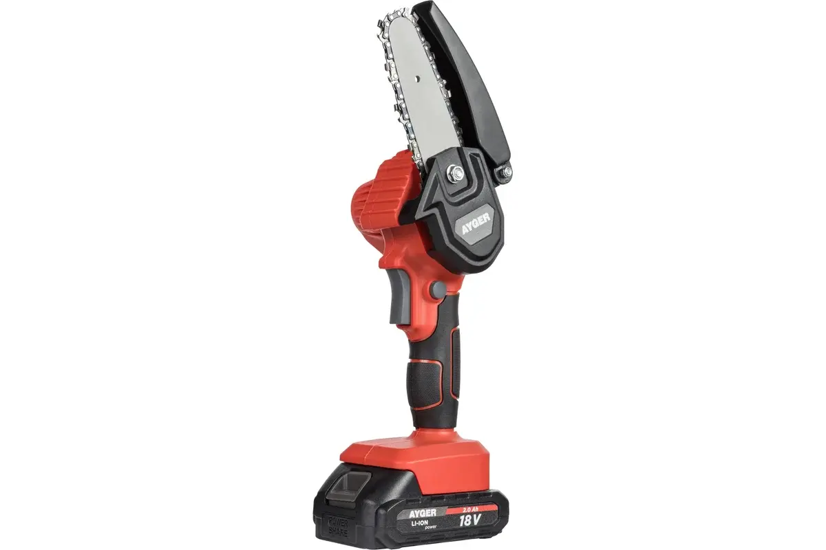 Пила цепная аккумуляторная AYGER CCS1820 предназначена для распила древесины на садовом участке.